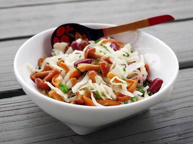 Постный салат с маринованными грибами и капустой