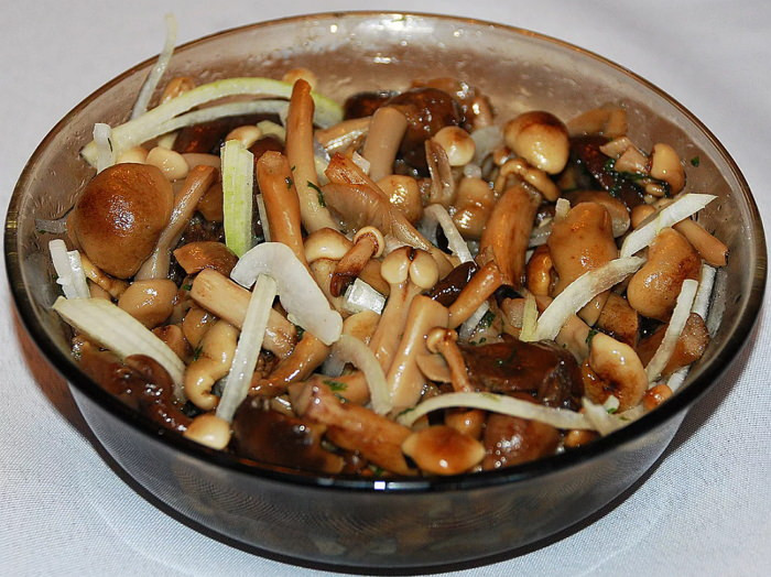 Салат из маринованных опят с луком