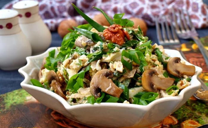 Изысканный салат с маринованными грибами