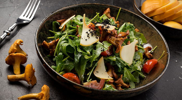 Салат с рукколой и маринованными грибами