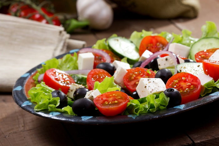 Греческий салат – одно из самых простых блюд греческой кухни. Еще в начале ХХ века никто бы подумать не мог, что любимое летнее кушанье сельских жителей Греции однажды войдет в ресторанное меню. Этот знаменитый салат готовят из помидоров, огурцов, феты, лука и маслин. Заправляя его оливковым маслом с солью, черным перцем и орегано.