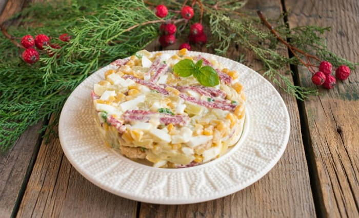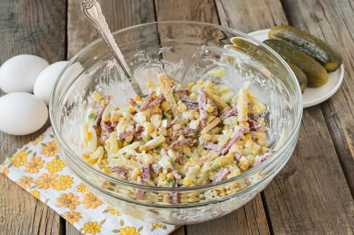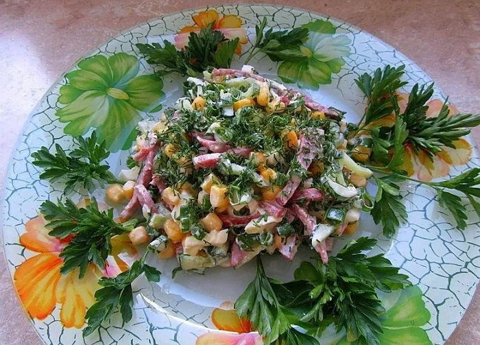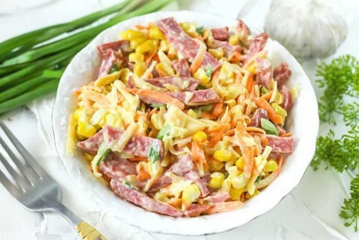 Салат с колбасой и кукурузой – хитрости, советы