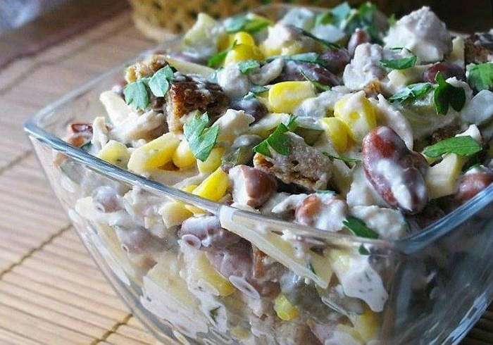 Салат с кириешками и кукурузой