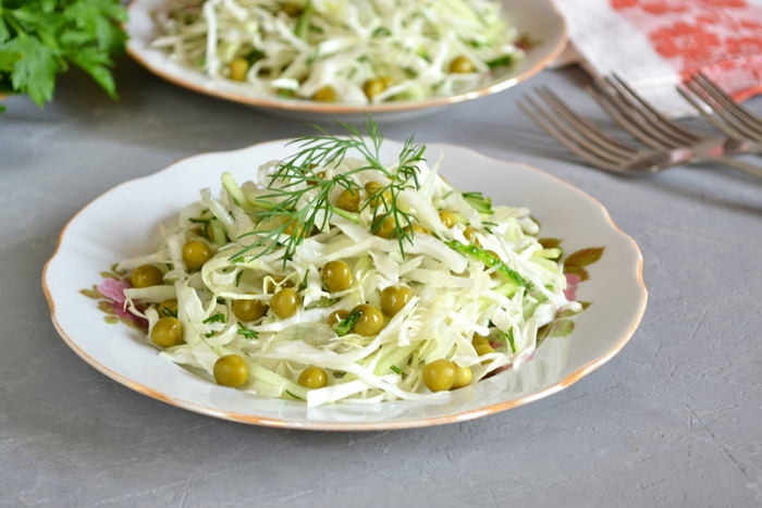 Салат из капусты и зелёного горошка