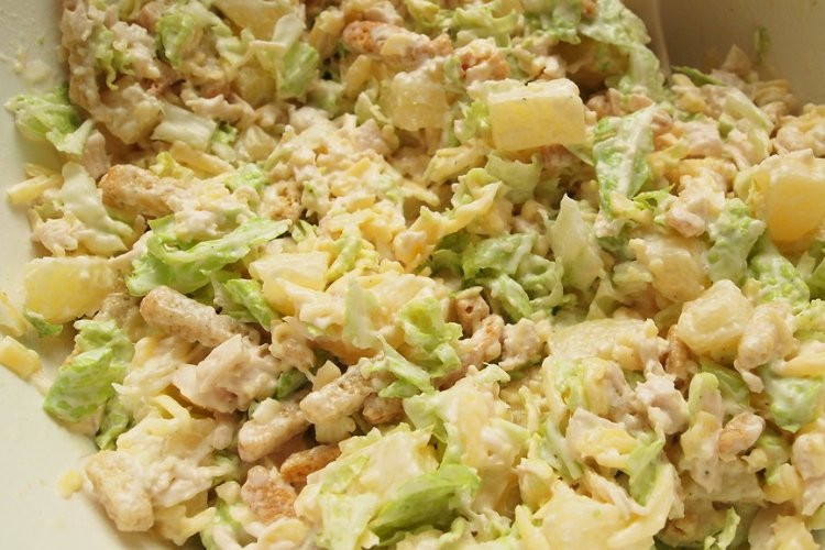 11. Салат из пекинской капусты, ананасов и кириешек