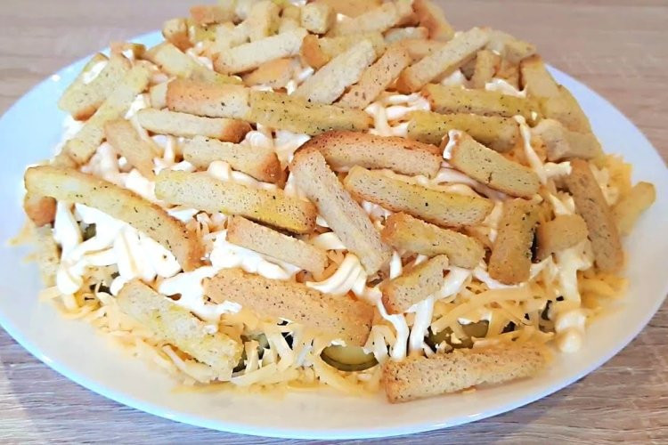 Оригинальный салат с кириешками, который понравится каждому!