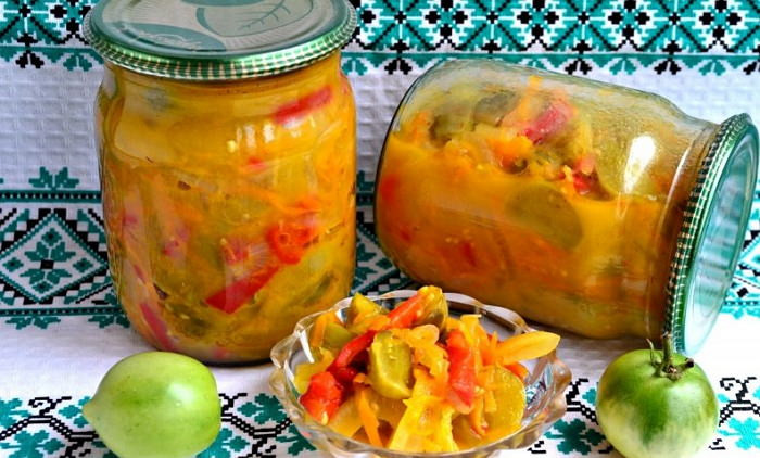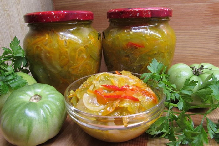 5 рецептов заготовок салата из зеленых помидор на зиму