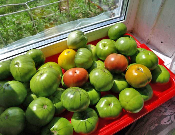Любите только красные помидоры? Тогда если пришли холодные ночи и туманы, которые губят помидоры, сорвите их недозрелыми и постарайтесь помочь помидорам дозреть, выбрав любой их четырех способов. Отберите неповрежденные плесенью здоровые помидоры, вымойте, обсушите и положите дозревать примерно на 2 недели. Зеленые помидоры должны дозревать в темноте и при небольшой влажности.