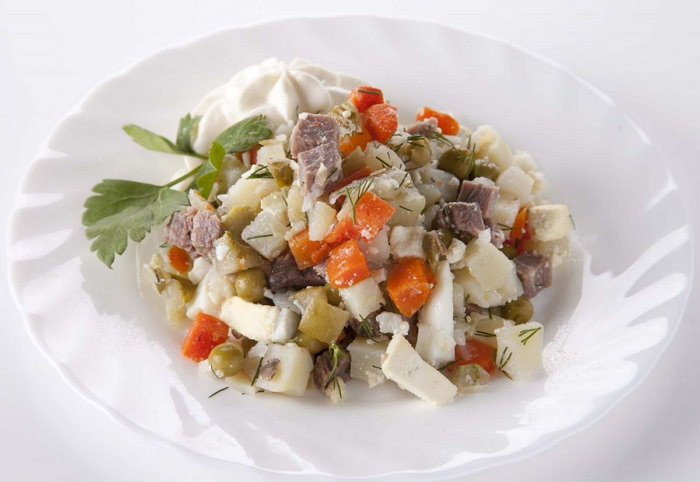 - Если Вам предстоит накрывать праздничный стол, за которым будет присутствовать большое количество мужчин, порадуйте их салатом Столичный с говядиной. Такой вариант более калориен, а по вкусу ничем не уступает классическому. Ваши гости обязательно оценят!