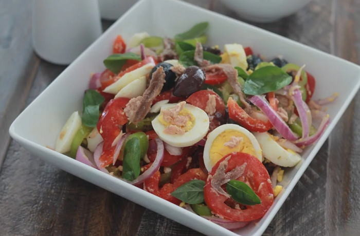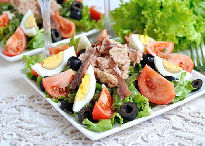 Салат прованской кухни изначально состоял только из помидоров, чеснока, маслин и анчоусов. Сейчас существует бесконечное множество вариантов приготовления, а о классическом рецепте до сих пор спорят повара всего мира.Салат Нисуаз с тунцом и фирменной заправкой