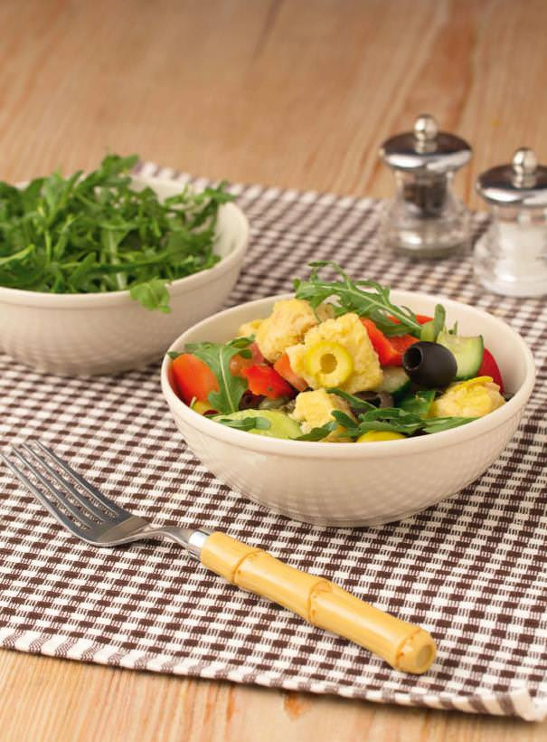 Этим хлебным кушаньем, или panzanella, можно полакомиться в Италии, в основном в регионах Тоскана, Умбрия и Марке. Почему он так называется? Потому что по этому рецепту черствый хлеб вымачивали в оливковом масле, благодаря чему пожилые итальянцы могли насладиться блюдом, не повредив зубов. Это невероятно быстрый и легкий салатик, который можно подавать и как основное блюдо, и как дополнение к любым горячим яствам.