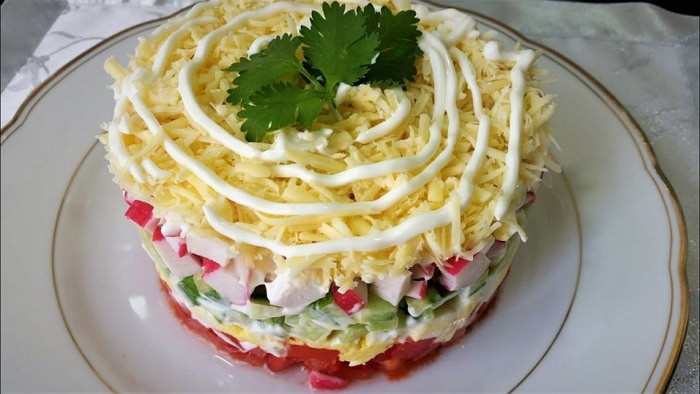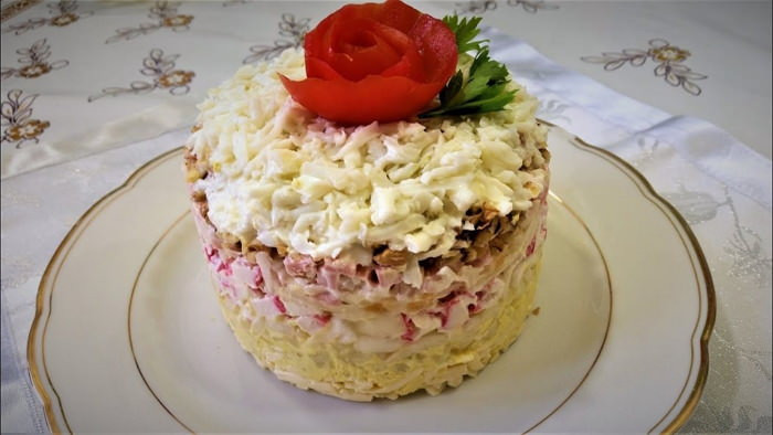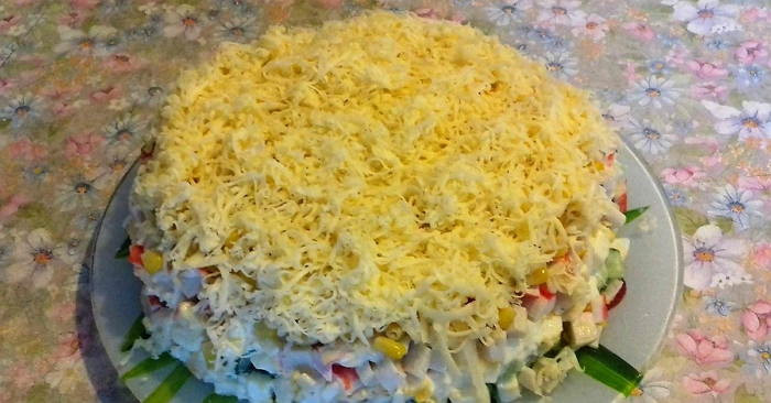 Наслаждение вкусом: слоеный салат с крабовыми палочками