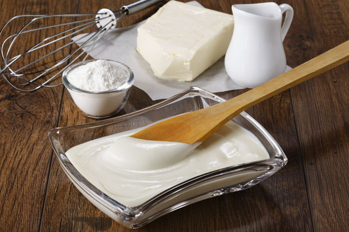 - Если возникнет необходимость сохранить соус Бешамель, приготовленный в домашних условиях несколько дней — залейте его тонким слоем предварительно растопленного сливочного масла. Соус не засохнет и корочки не образуется.