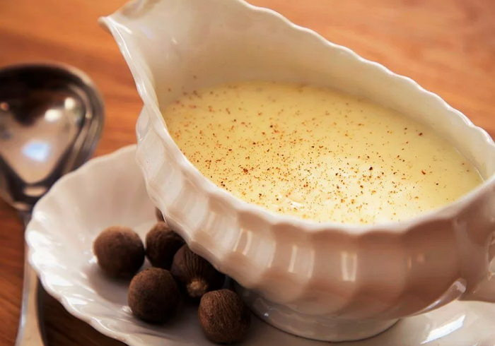 - После этого переливаем бешамель в соусницу и подаем к столу или используем для приготовления других блюд, например, лазаньи.