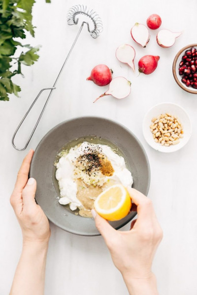 Этот нежный йогуртовый соус выглядит настолько аппетитно и красиво, что можно попробовать ложкой или обмакнуть в него кусок хлеба. А вкус вас приятно удивит!