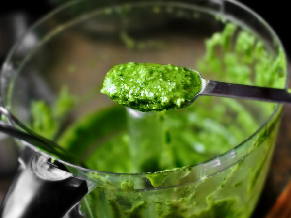 Соус «Песто» получил своё название от слова «давить», «топтать». В итальянских ресторанах и кафе этот соус подают повсеместно. У соуса восхитительный аромат, и даже те, кто не проникся любовью к нему, признают, что вкус Песто уникален и не похож на иные приправы к блюдам. Песто удачно сочетается с рыбными и мясными блюдами, гарнирами и даже десертами. Интересный зелёный цвет выгодно смотрится на тарелке, его мажут на хлебный тост и добавляют в пиццу. Предлагаем приготовить соус песто рецепт в домашних условиях.