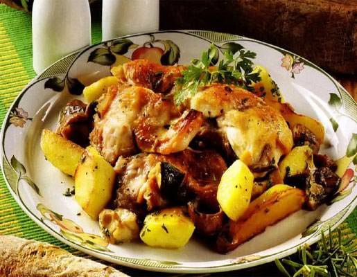 Кролик, запеченный с картофелем и луком