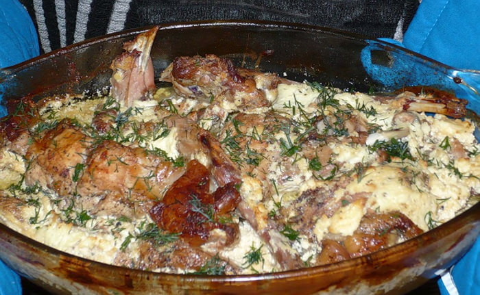 Кролик запеченный в духовке со сметаной