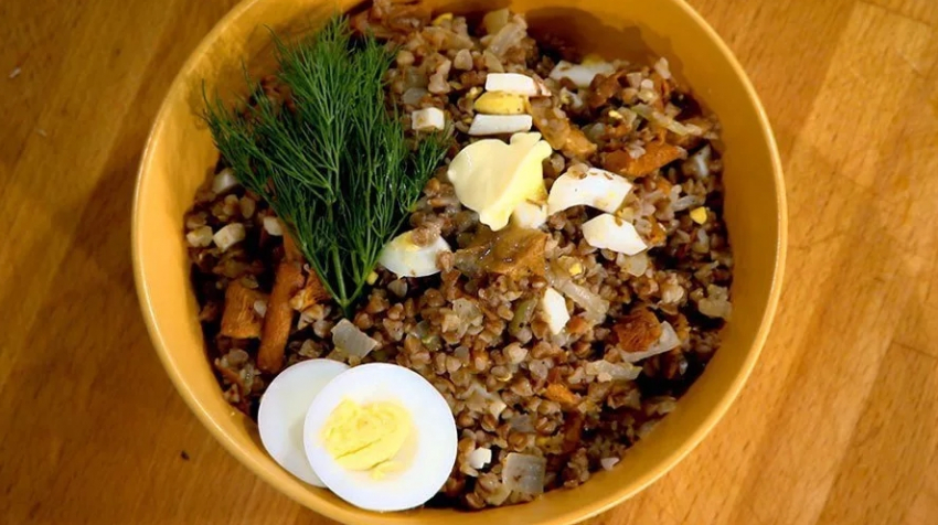 Гречка с грибами и яйцом