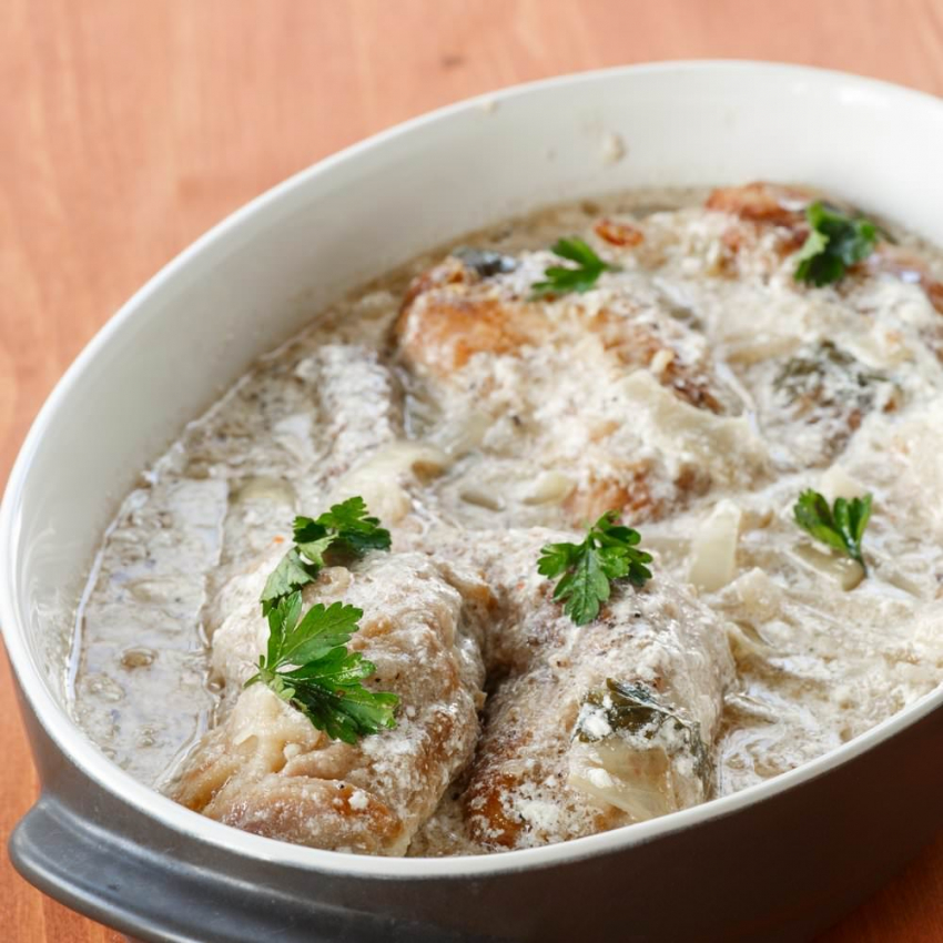 Сметану немного развести молоком или водой, еще немного досолить , добавить молотого перчика, если вам кажется, что блюдо может быть пресным.