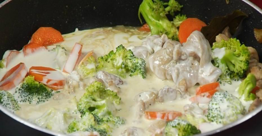 Самый последний шаг – выключаем подачу тепла, дожидаемся, пока соус перестанет кипеть-булькать и быстро-быстро размешиваем во всем этом деле желток, придавая блюду окончательный лоск.