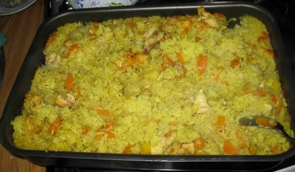 - Плов с курицей в духовке готов.