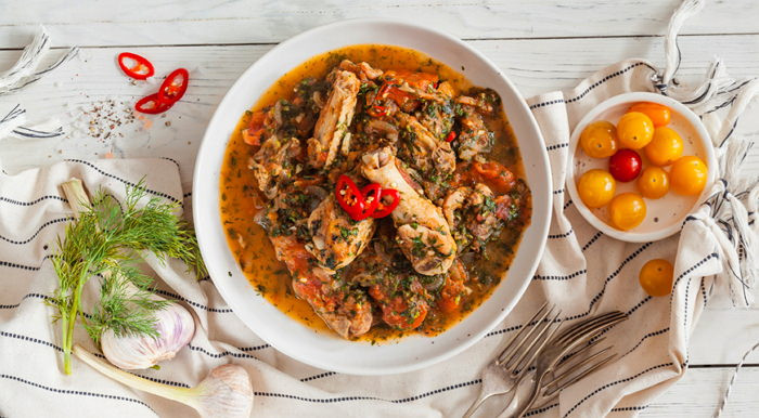 Основные принципы приготовления этого блюда остаются неизменными — это обжаренное мясо с добавлением томатов, лука, чеснока и специй. Таков традиционный классический рецепт чахохбили из курицы, а ниже мы рассмотрим более разнообразные способы приготовления этого замечательного блюда.Чахохбили из курицы классический рецепт