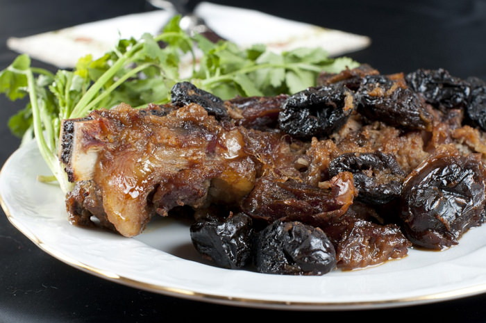 - Чернослив хорошо промойте и в конце приготовления (минут за 20) добавьте к мясу, также добавьте чайную ложку корицы.