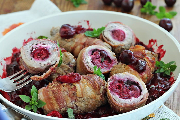 - Такой мясной рулет идеально подавать с вишневым соусом или острым соусом чили. А на гарнир приготовьте картофельное пюре или запеченные овощи.