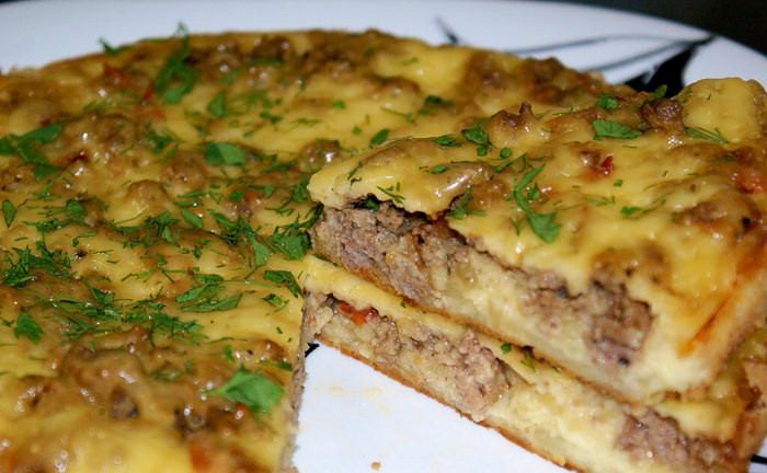 - Затем картошку, залить все заливкой. Выпекать при 180 градусах 50 минут.