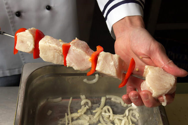 Аналогично выбирают и мясо для рыбного шашлыка. Обычно берут уже готовое филе, которое нарезают кубиками и нанизывают на шампур. Главное условие – мясо должно быть плотным, а не жидким. Если попалось такое, можно приготовить его порционно, но не на шампурах, а на специальной решетке с мелкими ячейками. Получится не шашлык из рыбы, а нечто подобное на гуляш.