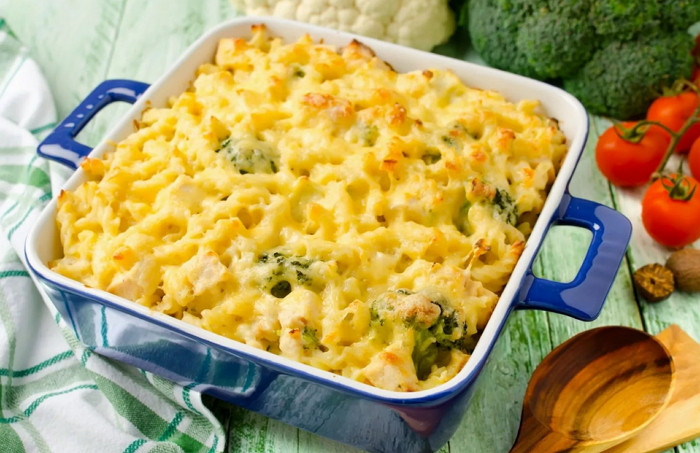 - Откинуть макароны, аккуратно перемешать с сырной массой. Выложить все в форму для запекания. Посыпать сухой хлебной крошкой. Запекать не прикрывая 25 минут или пока не закипит по краям.