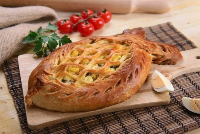 - Заклеиваем лепешку вторым листом теста, отправляем в духовку при 180 градусах на 20 минут.