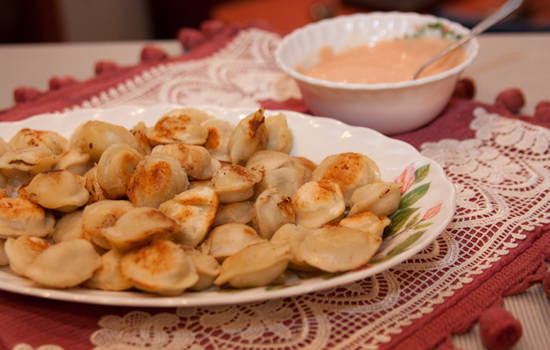 Как и отварные либо ленивые пельмени, жаренные подают со сметаной, покупными или домашними соусами, приветствуется добавление специй и зелени. Также к ним можно подать бульон, но только в отдельной посуде, чтобы не раскисла ароматная корочка.