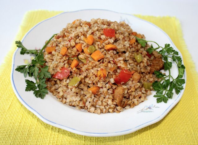 Все мы понимаем, как полезна гречневая кашка с овощами, предлагаем состряпать ее с зеленью, что придаст ей наиболее интересный вкус и еще более пользы. Угощайтесь!