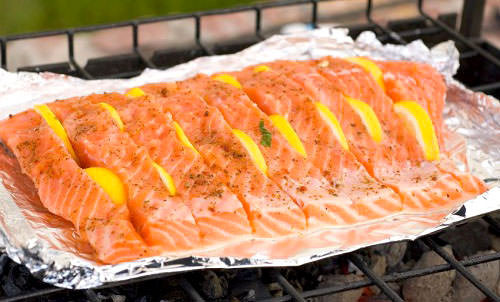 Лосось запечённый на решётке в фольге