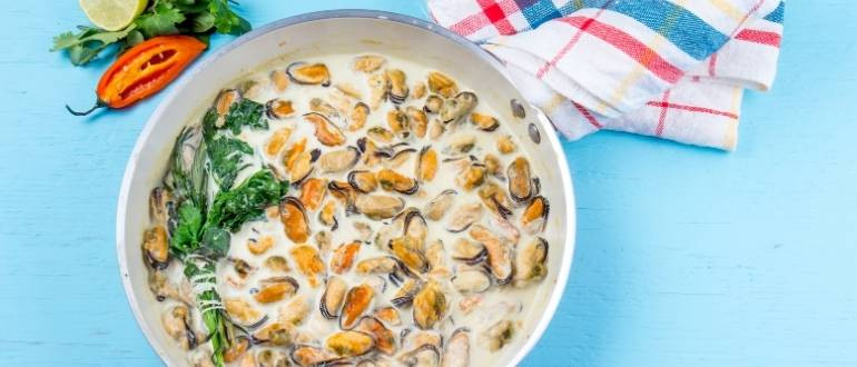 Мидии в сливочно-чесночном соусе – оригинальное и быстрое угощение можно приготовить на сковороде, в кастрюле на плите или в духовке на противне. Такое блюдо можно подавать в качестве закуски на ужин или праздничный стол.