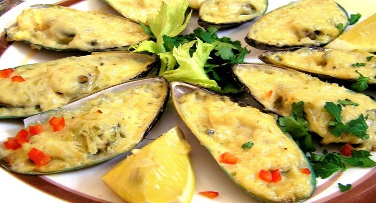 Рецепт мидий в сливочно-чесночном соусе в духовке