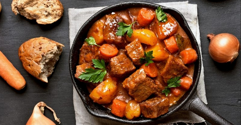 Сытный и вкусный гуляш по-венгерски можно приготовить в сковородке, только нужно, чтобы она была с толстым дном во избежание подгорания блюда. Готовить будем с овощами, паприкой и специями.Ингредиенты: