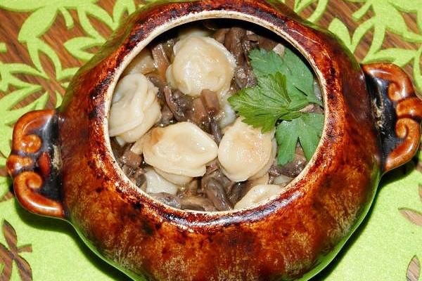 Пельмени с грибами в горшочках