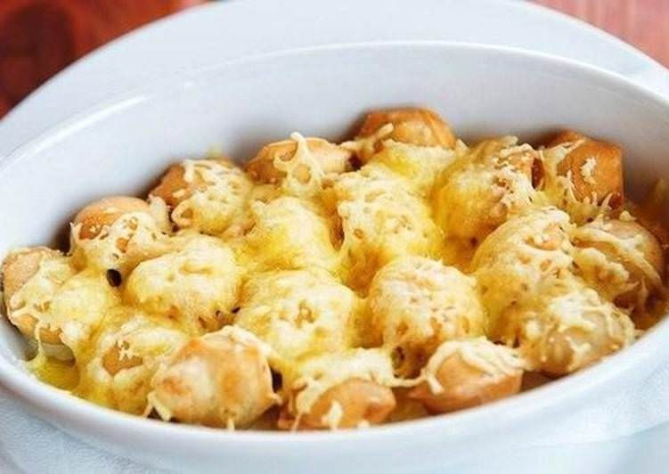 Пельмени, запеченные в соусе под сыром