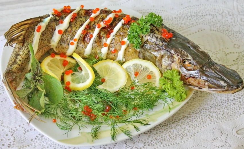 Фаршированная щука послужит прекрасным дополнением к новогоднему столу, к тому же ее можно приготовить заранее -блюдо можно подавать не только горячим, но и холодным.