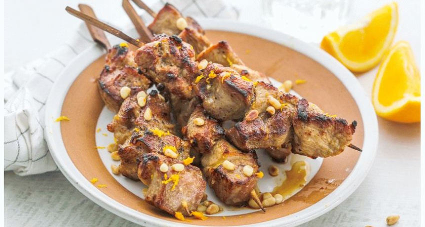 Разрежьте филе индейки на небольшие кусочки (3-4 см). Смешайте апельсиновый сок, который лучше приготовить самостоятельно, с молотыми кедровыми орехами, после чего этим раствором залейте мясо и оставьте мариноваться 1,5 – 2 часа (вполне достаточно). Перед приготовлением на углях посолите и поперчите, но не раньше, потому что соль забирает сок, и шашлык становится сухим. Жарьте 15-20 минут.