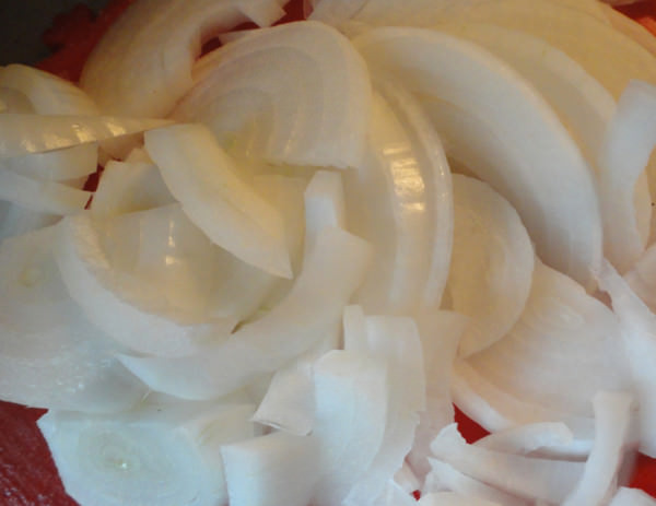 - Подготовленные луковицы нарезать тонкими колечками.