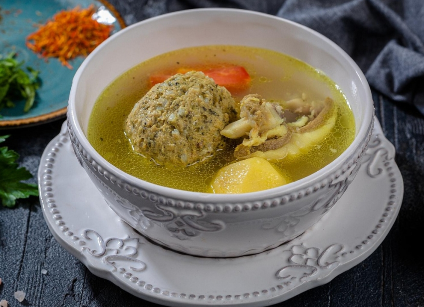 - Шафран залить кипятком и дать настояться минут 10. Добавить процеженный шафран в бульон с кюфтой. Он придаст блюду очень красивый желтый цвет. Все готово, можно разливать по тарелкам и подавать, посыпав зеленью.