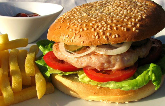 Как сделать котлету для гамбургера: только приготовив самостоятельно фарш, можно быть уверенным в его качестве и свежести. Для этого необходимо взять свежее мясо, вымыть и просушить ее. Мясо нарезать небольшими кусочками и пропустить через мясорубку (можно даже дважды). Добавить яйцо, панировочные сухари и специи, посолить и поперчить по вкусу.