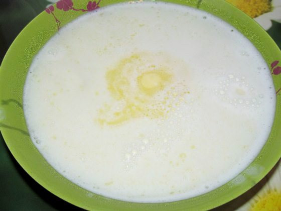 Для возможности перевоплотить сухое молоко в жидкое, понадобиться один л теплой воды (около сорока градусов). Постепенно прибавляем ее в порошок, тщательным образом растирая его. Продолжаем вливать воду, динамично размешивая. Главное не дать сформироваться комочкам!