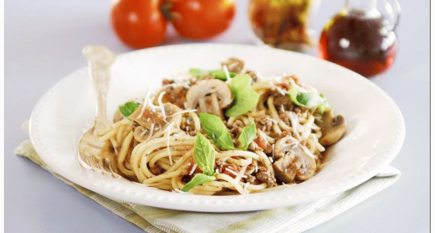 В ответ на вопрос, что приготовить на ужин, мы предлагаем очень быстрый рецепт приготовления спагетти болоньезе с грибами.Ингредиенты