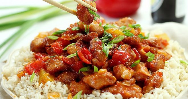 Курица в кисло сладком соусе по-китайски с ананасами