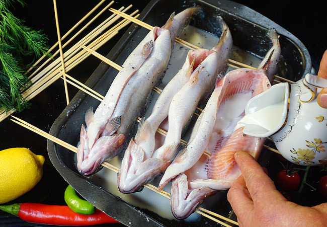 - Для получения сочной, ароматной и нежной рыбы рекомендуется предварительное маринование.